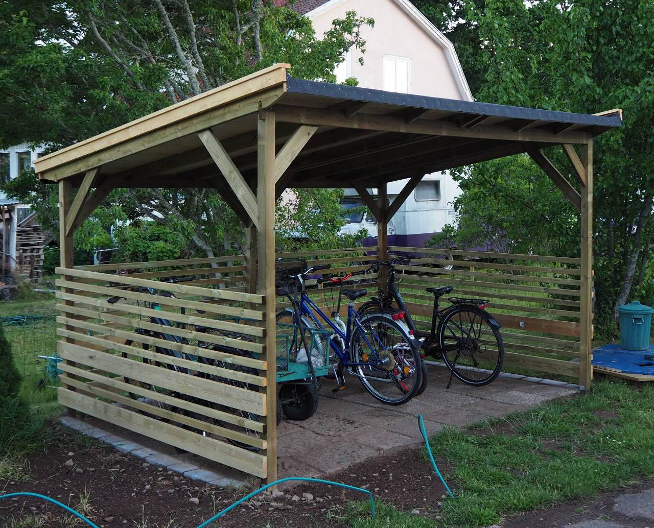 Der Unterstand ist groß genug dass auch die Handwagen darin Platz finden, und auch Gäste ihre Räder dort abstellen können. Außerdem hat er einen festen Boden und eignet sich deshalb auch als Arbeitsplatz für kleinere Reparaturen wenn die Werkstatt mal wieder belegt ist.