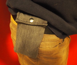 Solche Holster gibt es zwar im Handel, aber eines zu basteln sollte ja nicht so schwer sein – ich hatte ohnehin noch ein Paar zerschlissene Jeans die eine neue Rolle brauchten.