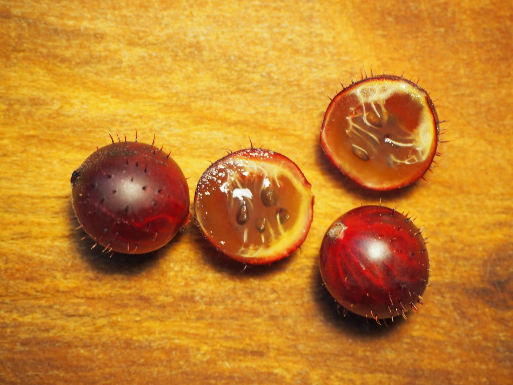 Vor einigen Jahren bekam ich ein Stück des Wurzelstocks einer Stachelbeere geschenkt. Der kleine Strauch wächst zwar unglaublich langsam, produziert aber inzwischen jedes Jahr eine kleine Schüssel voll lustiger Beeren.