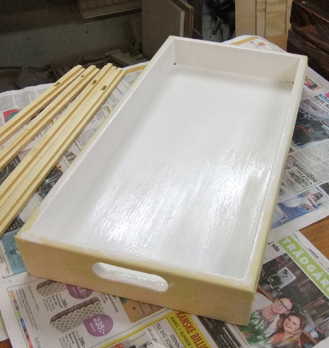 Dann wird die Innenseite mit weissem Lack gestrichen: