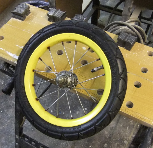 Dieses Rollerrad hatte es schwer erwischt. Nach vielen Monaten Sonne, Regen, Frost und Hitze, und unbarmherzigen Stössen und Sprüngen über Bordsteinkanten und wilden Fahrten durch Pfützen, Sand und über Schotterpisten hatten sich ein paar Speichen gelöst, und die Kugellager sassen fest. Kinderspielzeug muss viel aushalten…