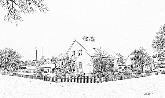 Das Haus wurde im Jahr 1955 gebaut, und zwar vom Dorfschneider Tornefalk. An der Südwestecke befand sich dessen Laden, und im Keller, so wie auch heute noch, die Werkstatt und Wäscherei. Tornefalk war geschickt und im Dorf sehr geachtet, und Schneider’s (=Skräddarn’s) war eine allgemein wohlbekannte Adresse.